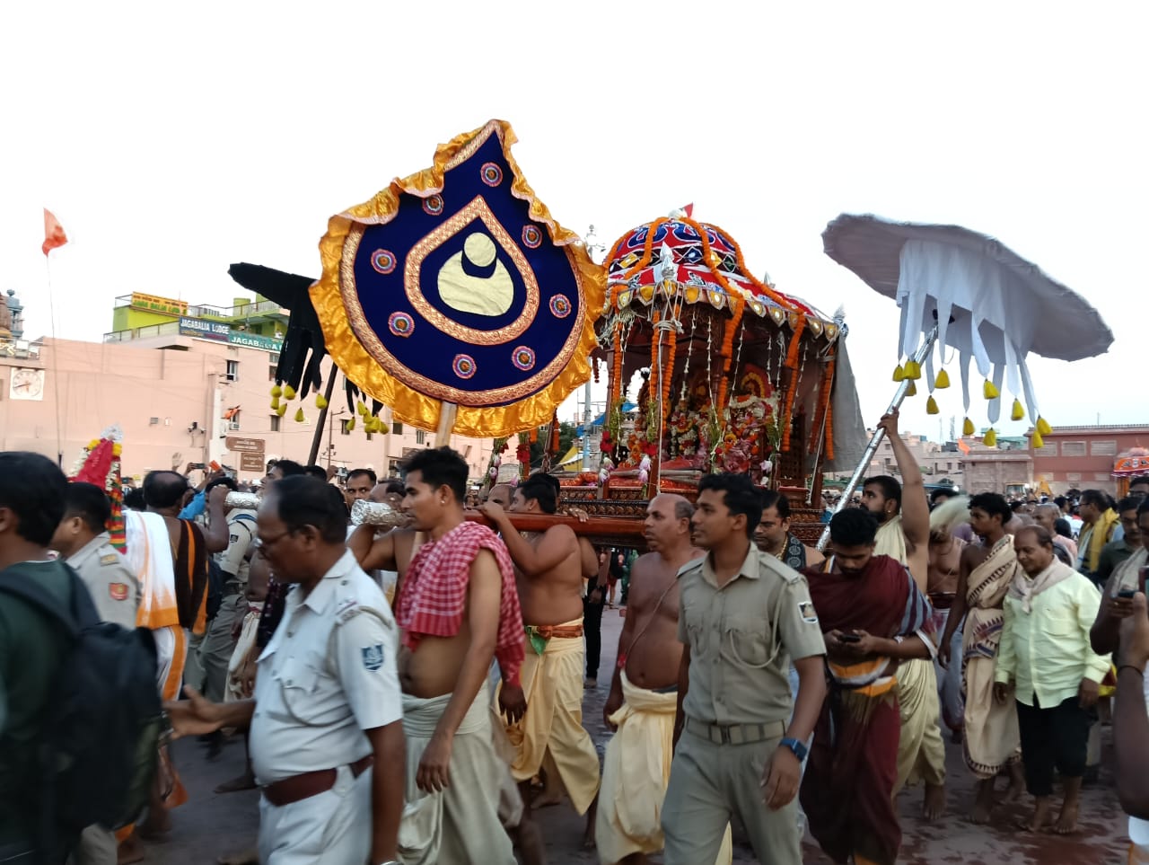 - 4:00 PM: Arrival of the Ajyanmala (divine command) at the Ratha Khala (construction yard) and the start of the procession.