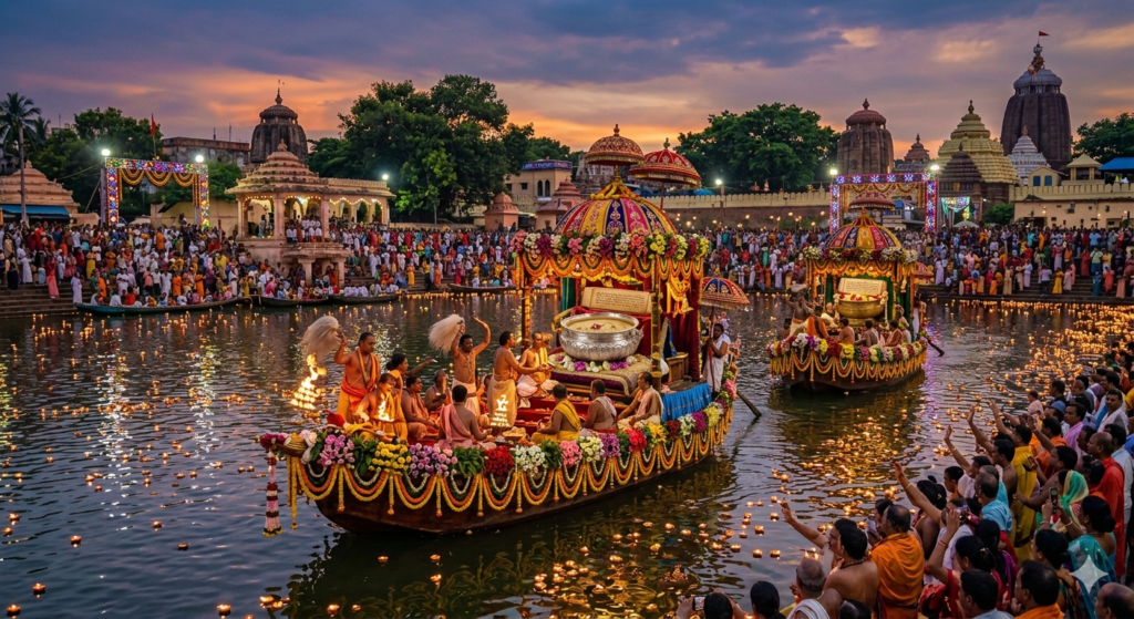 - 10:00 PM: Completion of the water cruise and the deities’ return (Bahuda Bije) to the Shreemandir.
